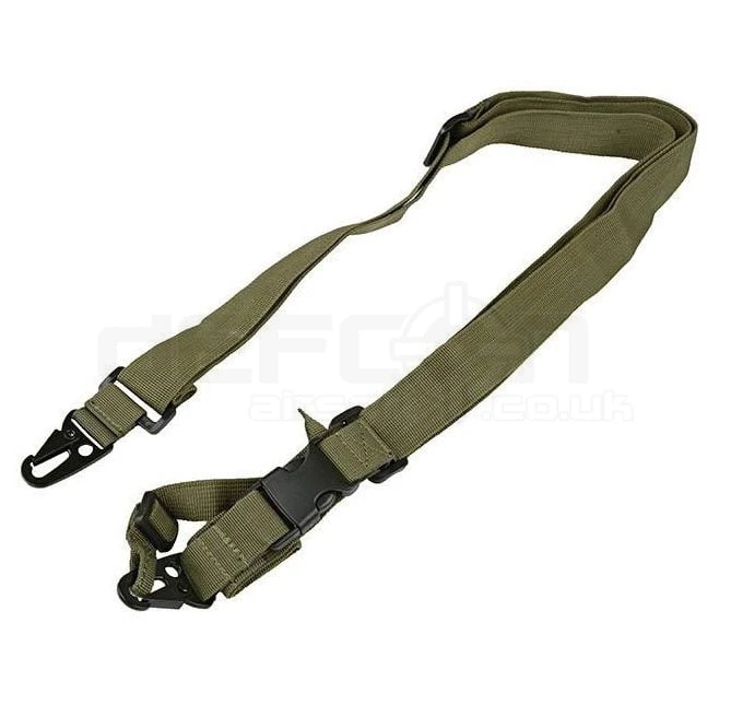 3 point tactical rifle sling designed to limit the effort required to carry your airsoft rifle or to hang on your back or to your side. Twin springed clips connect into the front sling install and also back sling point of your rifle. Very solid, makes it easier to carry a heavy rifle into battle.