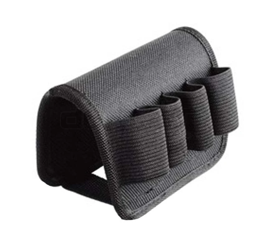 Velcro pouch to hold 4 shotgun shells. This is a small tactical velcro shell holder that fits most shotguns