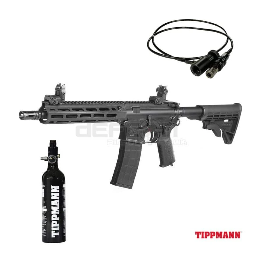 BUNDLE DEAL – Includes Tippmann Airsoft M4 CQB HPA Rifle V2 (RRP £459.99), Tippmann HPA Tank Aluminium 48ci 3K (RRP £54.99) and Tippmann Remote Line w Slide Check (RRP £49.99) – Total RRP £574.97