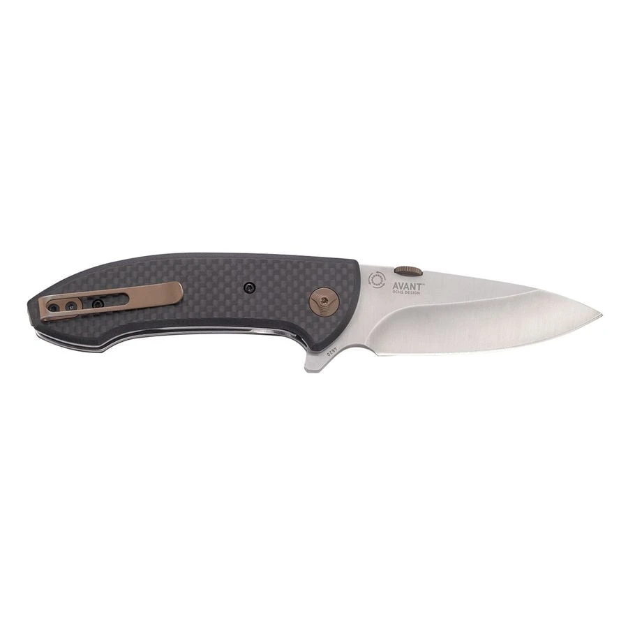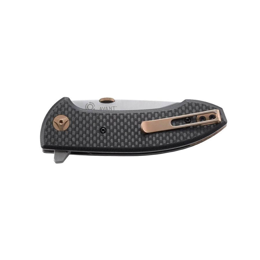 The Avant EDC folding knife competes for first place in the market with its clean lines, subtle bronze touches, and extremely ergonomic structure.