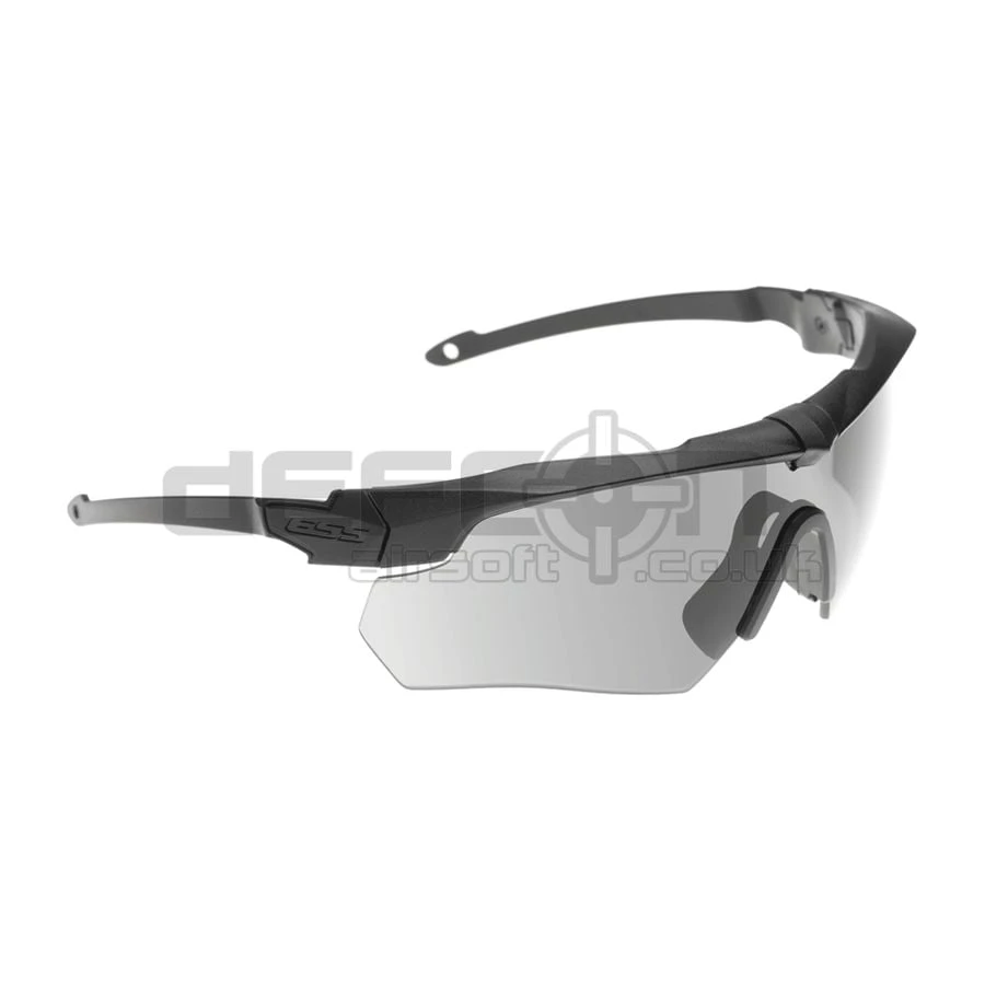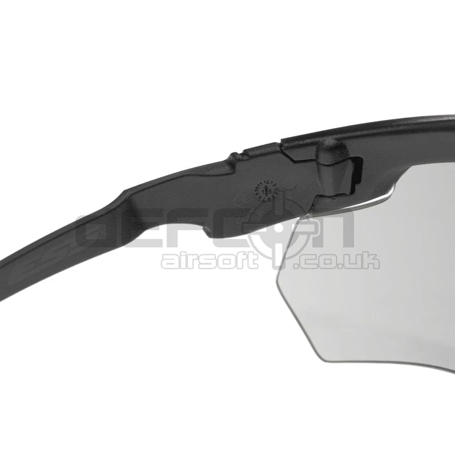 The ESS Crossbow Suppressor™ is the first spectacle frame designed for use with ear cup hearing protection and communications devices. Featuring Z-Bend™ Geometry, the frame’s ultra-thin temple arms help keep noise out by minimizing the effect on the padded seal of ear cups. The slim temples eliminate the hot spots and pressure points that commonly occur when normal eyewear is worn under ear cups.