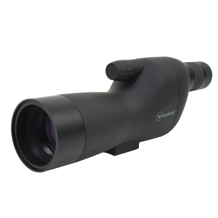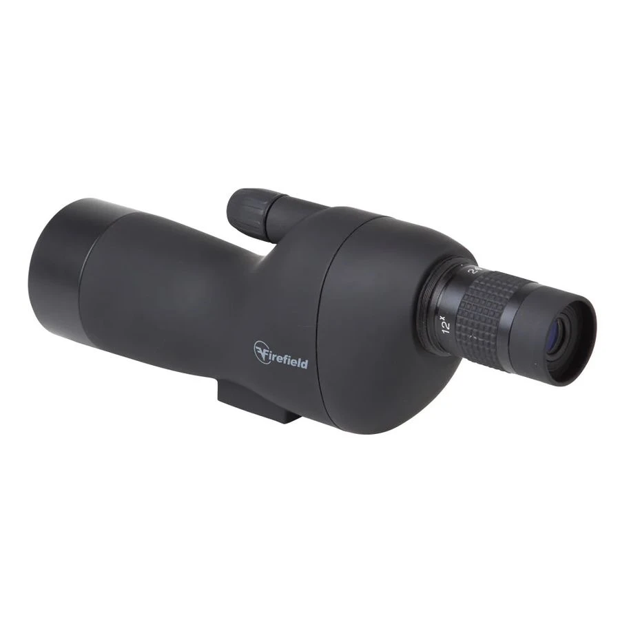 The Firefield® 12-36×50 Straight Edge Spotting Scope Kit is blazing a new trail in the spotting scope category. Its practical, yet sophisticated design allows you to hunt down your objective like a hawk. This high quality scope features fully multi-coated lenses and a durable, rubber armoured body that’s submersible in water up to one meter and 100 percent waterproof and fog proof. Featuring a comfortable, straight eyepiece, spotters can zero in on any size moving targets at short or long distances, perfect for tactical spotting. The 12-36x50SE Spotting Scope also features a nitrogen-purged housing with a built-in sunshade for added protection. With a camera mounting accessory sold separately, the 20-60x60SE Spotting Scope can create high magnification digiscope images with the click of a button. The unit, along with its heavy-duty tripod, stows easily and securely into the thick nylon carrying case.