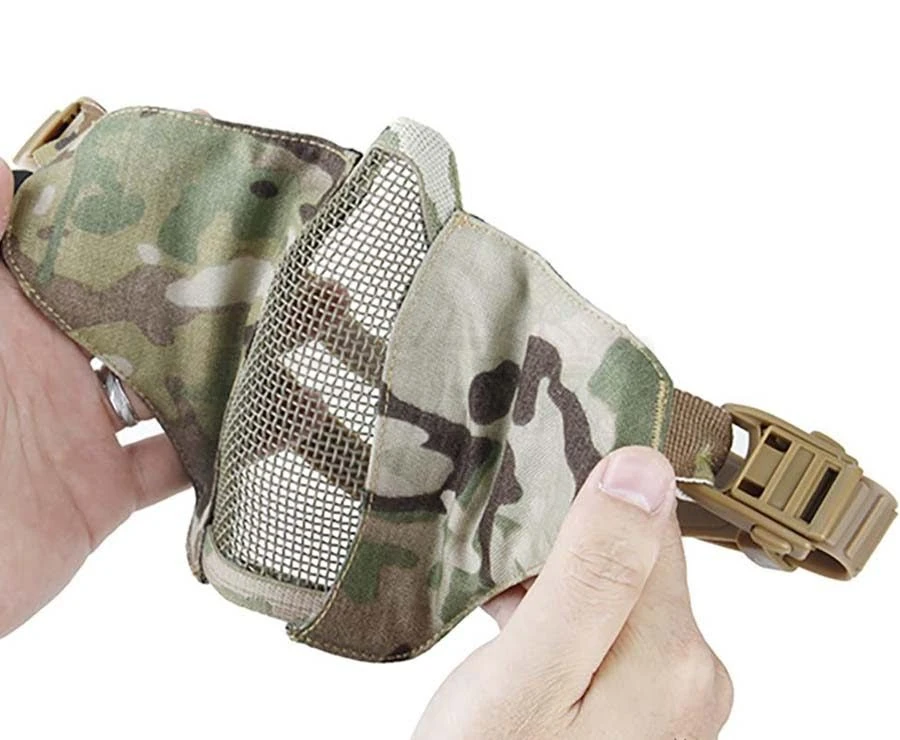A combination of Multicam metal mesh mask with durable camouflage nylon cheek pieces designed to cover the lower face fits the contours of your face perfectly for fantastic comfort and superior protection and perfect cheek weld.