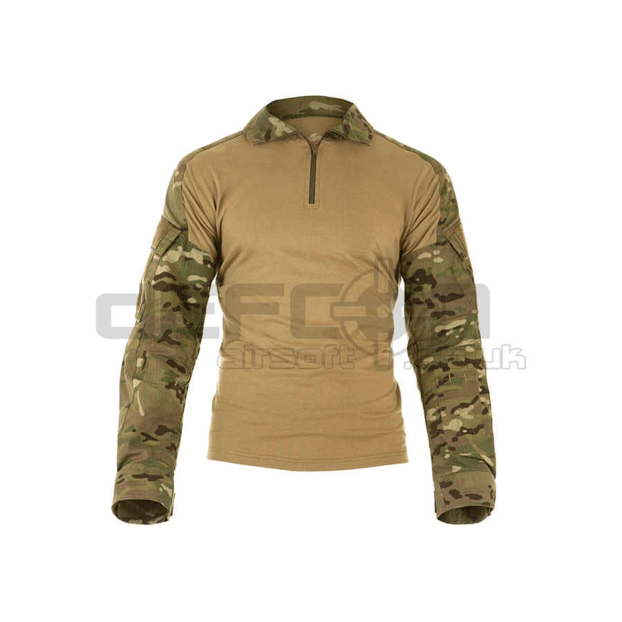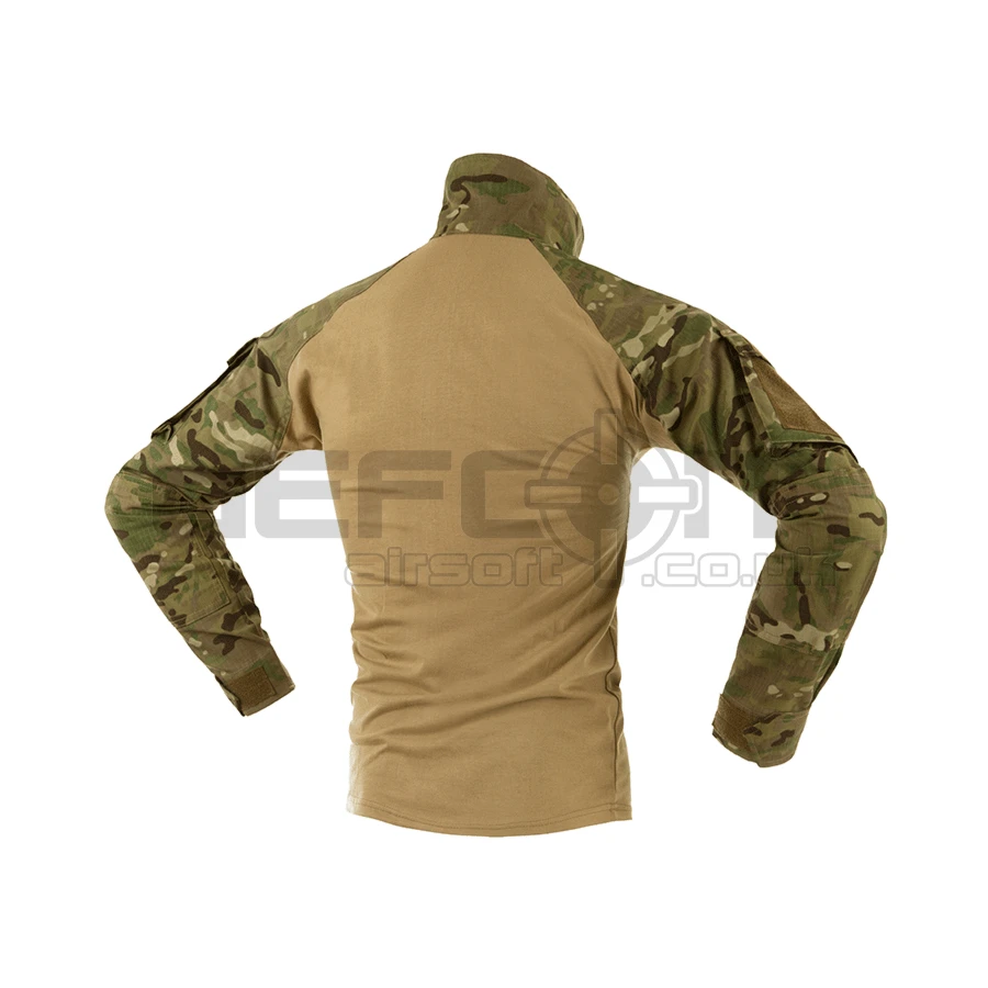 The Invader Gear Combat Shirt features an outstanding price-performance ratio and a high quality standard. The shirt is usually worn below body armor and is intended to avoid pressure marks and to provide good moisture wicking properties. The modern cut is well balanced for a not too tight but also not too loose fit. The collar is equipped with a quality zip by YKK and can be worn open or closed to avoid intrusion of debris. Large shoulder pockets provide quick and convenient storage. Elbows are reinforced with an additional layer of fabric which is also intended as a compartment for elbow pads. Sleeve end width is fully adjustable.