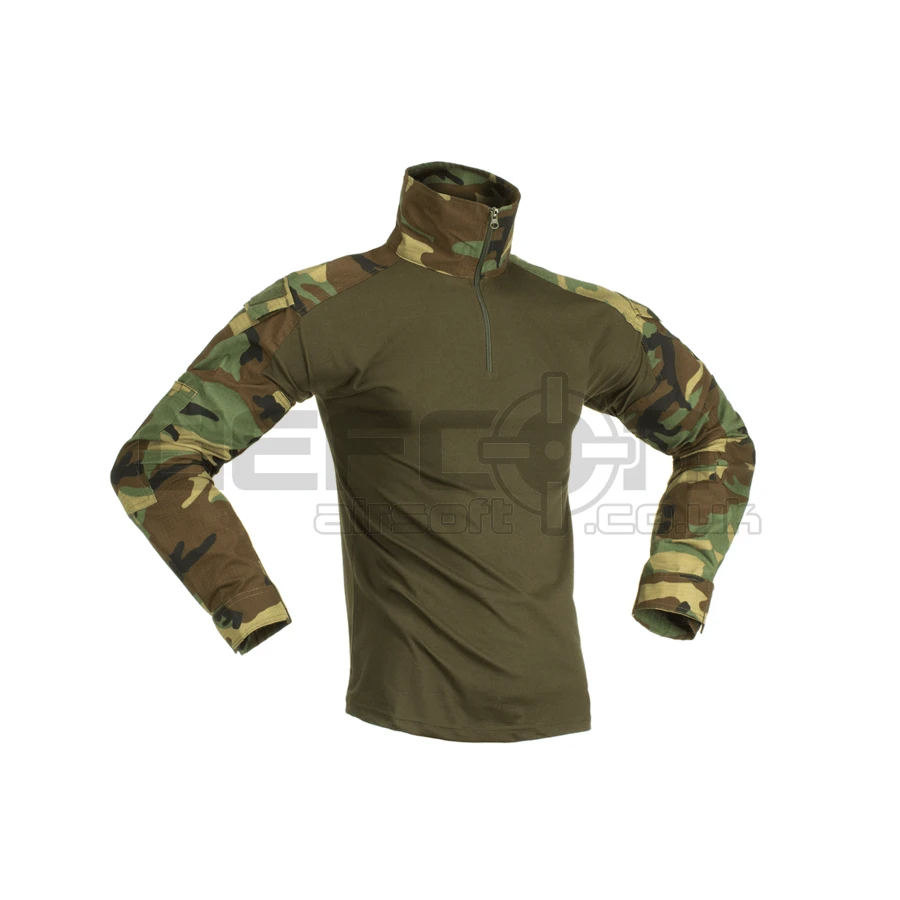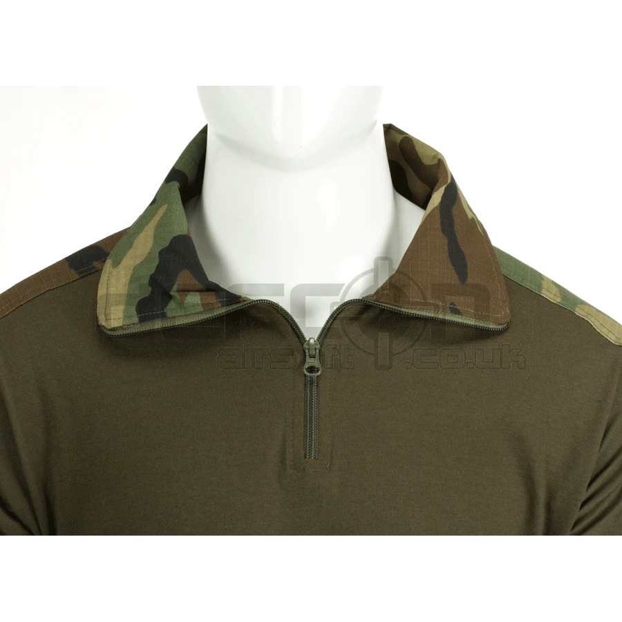 The Invader Gear Combat Shirt features an outstanding price-performance ratio and a high quality standard. The shirt is usually worn below body armor and is intended to avoid pressure marks and to provide good moisture wicking properties. The modern cut is well balanced for a not too tight but also not too loose fit. The collar is equipped with a quality zip by YKK and can be worn open or closed to avoid intrusion of debris. Large shoulder pockets provide quick and convenient storage. Elbows are reinforced with an additional layer of fabric which is also intended as a compartment for elbow pads. Sleeve end width is fully adjustable.