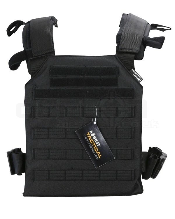 The Kombat Spartan Plate Carrier is specifically designed to be a lightweight plate carrier with molle front and rear platforms to aid mobility in battle situations.