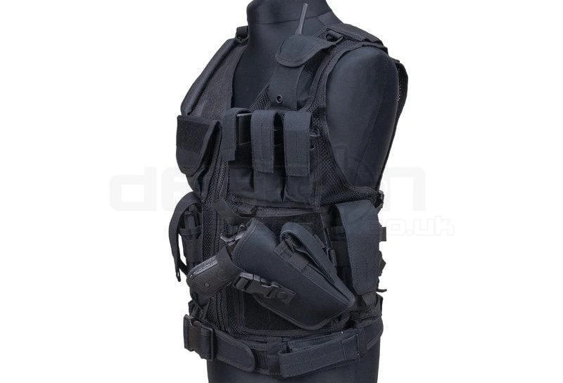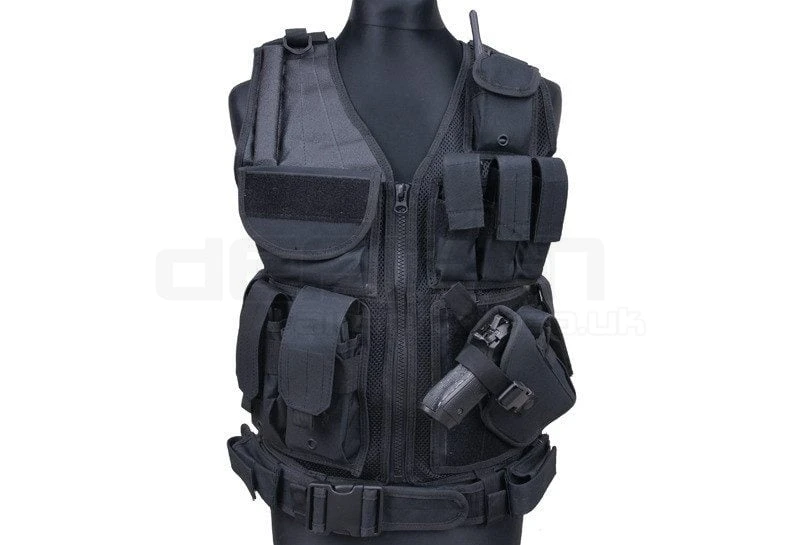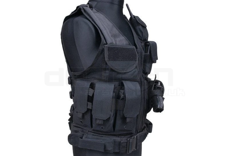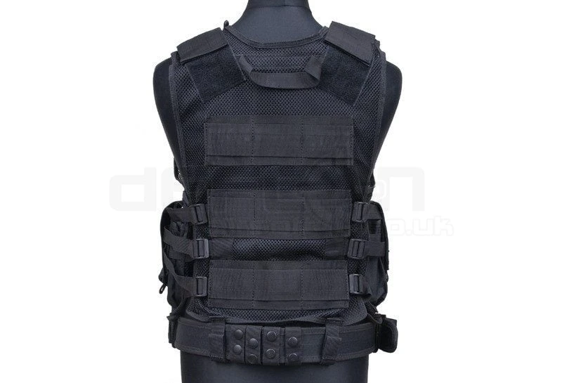 A great quality tactical vest at a competitive price. On the back there are 3 50mm large bands. Flap features three solitary ammo pouches for STANAG kind mags and small pouch with velcro panel for patches.