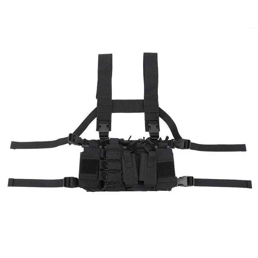 - 4 rifle mag pouches for M4 / AK Magazines with bungee straps.
