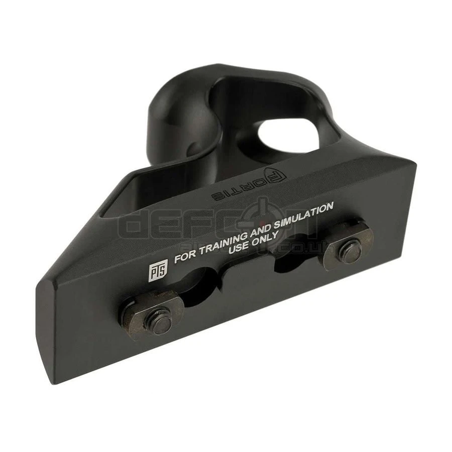 The PTS Fortis Shift™ Short Angle Grip is a one piece billet design made from 6061-T6 aluminum. The skeletonized and low profile grip design makes the grip extremely lightweight and can be seen as a hybrid between a short vertical grip and a hand stop. The angle softens the degree to which the support hand is canted, granting a more comfortable grip than your basic hand stop.