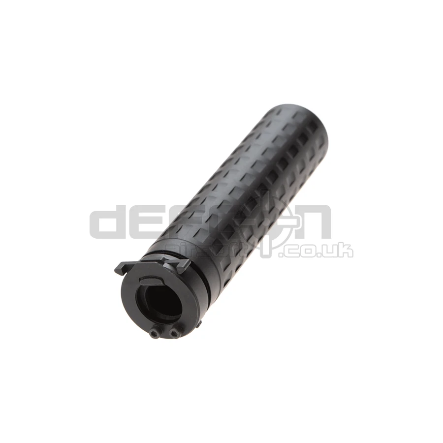 One of the top performing suppressors on the market, the PTS Griffin Armament M4SD-II is back with a second generation that encompasses the latest Griffin Armament suppressor design. The special machined fluted surface design reduces weight while increasing body strength. On the real suppressor, the increased surface area aids heat dissipation for greater longevity and durability during sustained use. The M4SD-II’s compact 6.6 inch length aids in maneuverability and minimally affects the weight balance of the gun. It also features Griffin Armament’s trademark SDQD mounting interface, well-known as one of the fastest and most secure mounting interfaces on the suppresso rmarket.