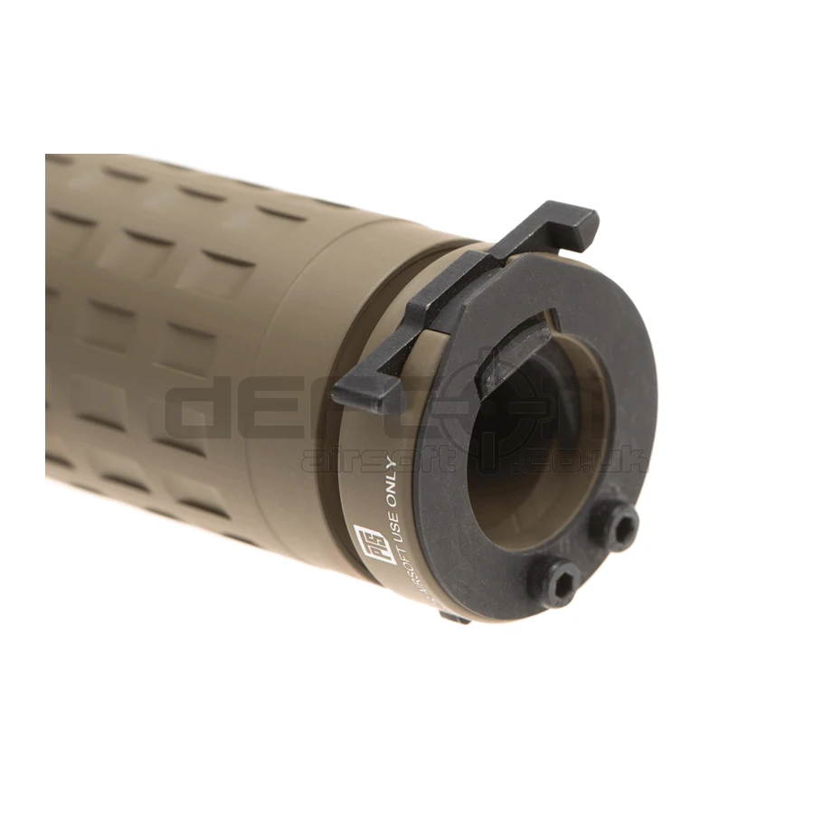 The second generation version of the PTS Griffin Armament M4SD-K Mock Suppressor encompasses the latest Griffin Armament suppressor design. The special machined fluted surface design reduces weight while increasing body strength. On the real suppressor, the increased surface area aids heat dissipation for greater longevity and durability during sustained use. The 5.75 inch long M4SD-K’s ultra-compact size aids in maneuverability and minimally affects the weight balance of the gun. It also features Griffin Armament’s trademark SDQD mounting interface,well-known as one of the fastest and most secure mounting interfaces on the suppressor market.