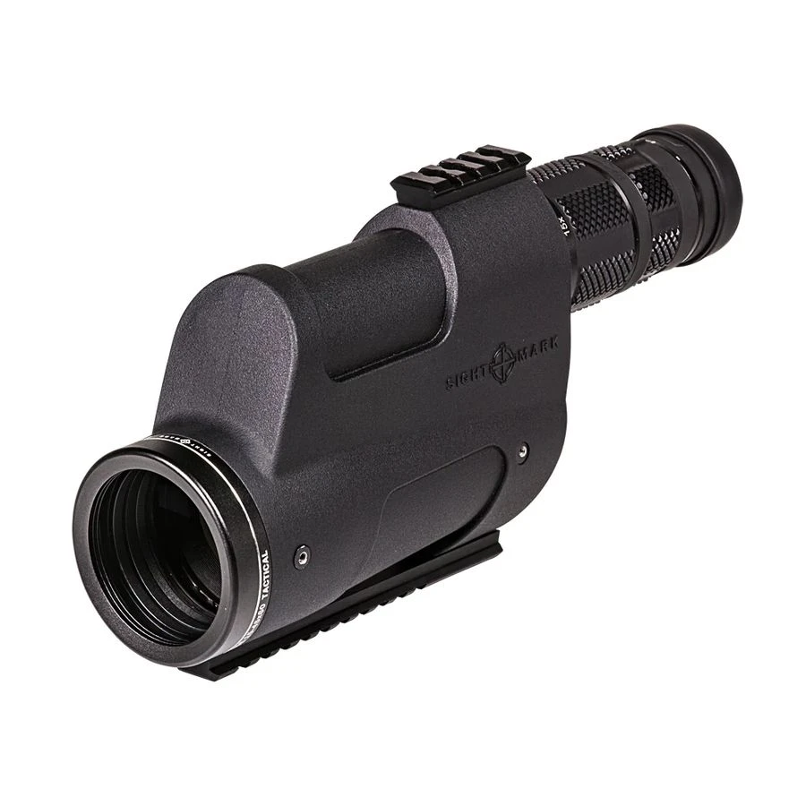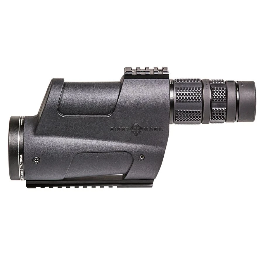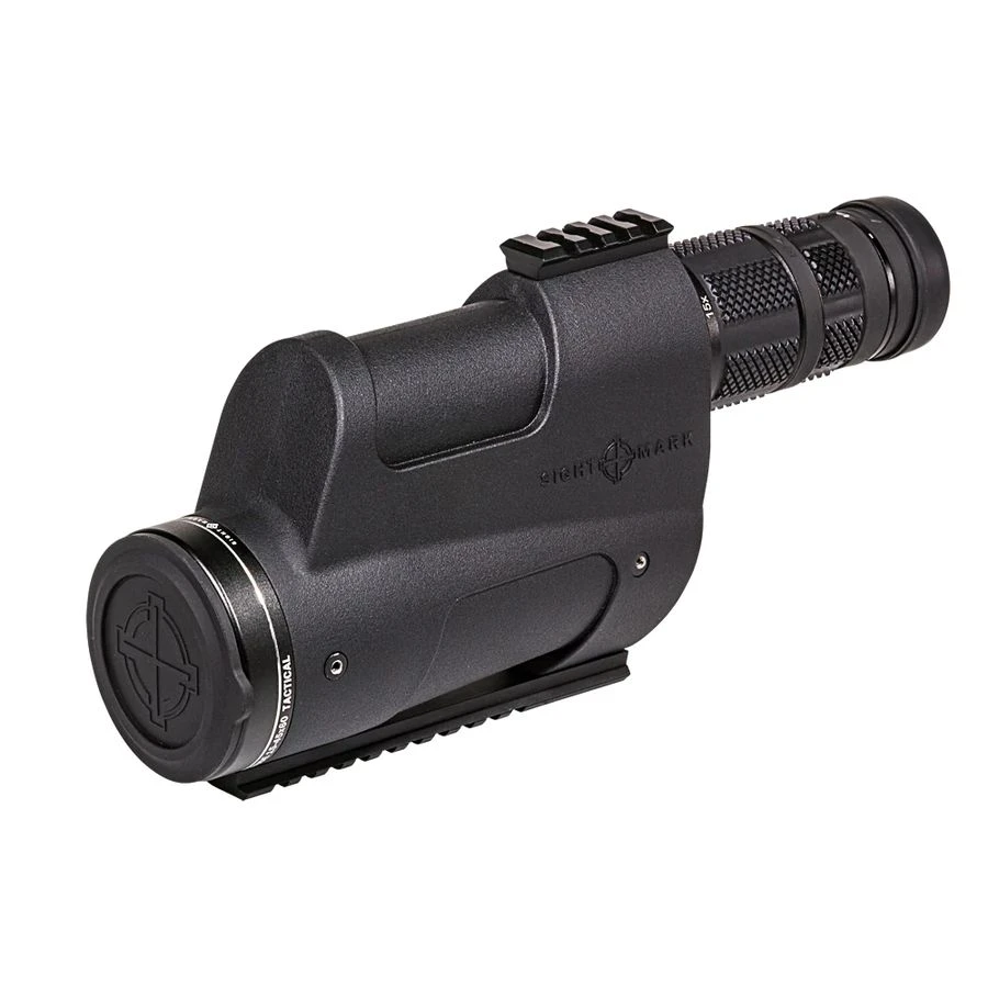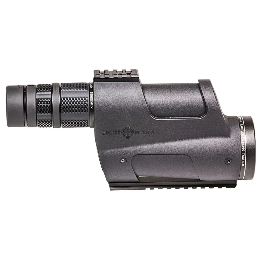 Shooting, hunting, tactical observation or simply glassing for wildlife, the Sightmark Latitude 15-45×60 Spotting Scope keeps your objective in focus. This precision engineered, dielectric-coated mirror designed optic utilizes variable 15-45X magnification, advanced fully multi-coated glass, 60mm objective lens, twist-up eye cups, a focusable eyepiece and a central focus system to give you stunning, distortion-free clarity and 177-ft. to 60-ft. field of view at 1,000 yards. The Sightmark Latitude 15-45×60 Spotting Scope boasts a rugged rubber armoured coating and IP67 waterproof, dustproof and fog proof protection for confident glassing when you need your optics most. Includes accessory rails, lens covers and a carrying case.