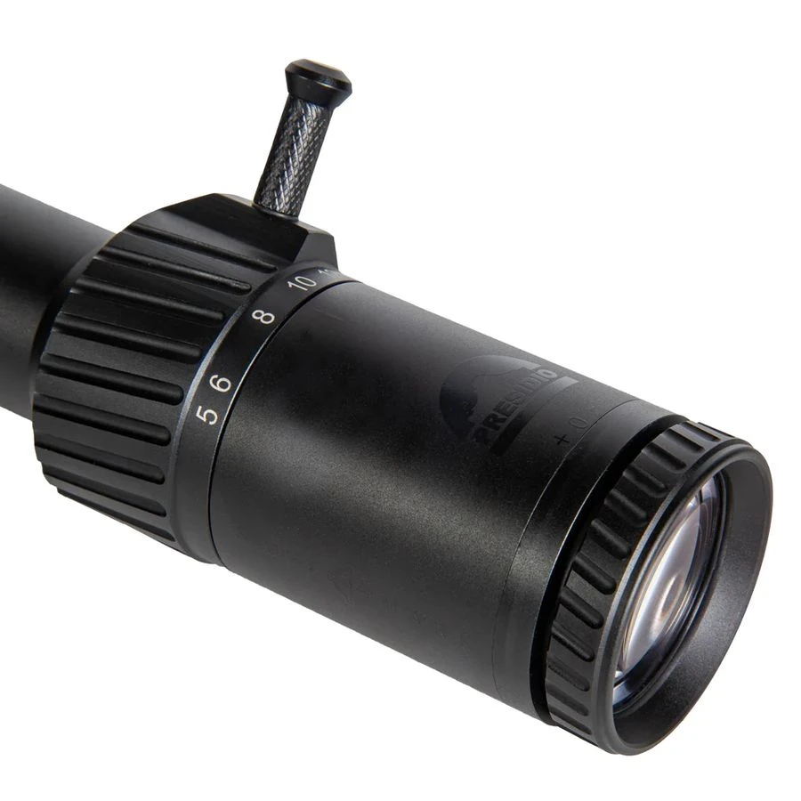 Its capped, low-profile turrets produce clear, audible clicks and feature aggressive exterior ‘knurling’, to add a distinct tactile feel to give shooters greater confidence when adjusting their windage and elevation. With built-in zero stops, and a single piece, 30mm tube and aircraft grade aluminium construction, the Presidio is extremely accurate and durable.