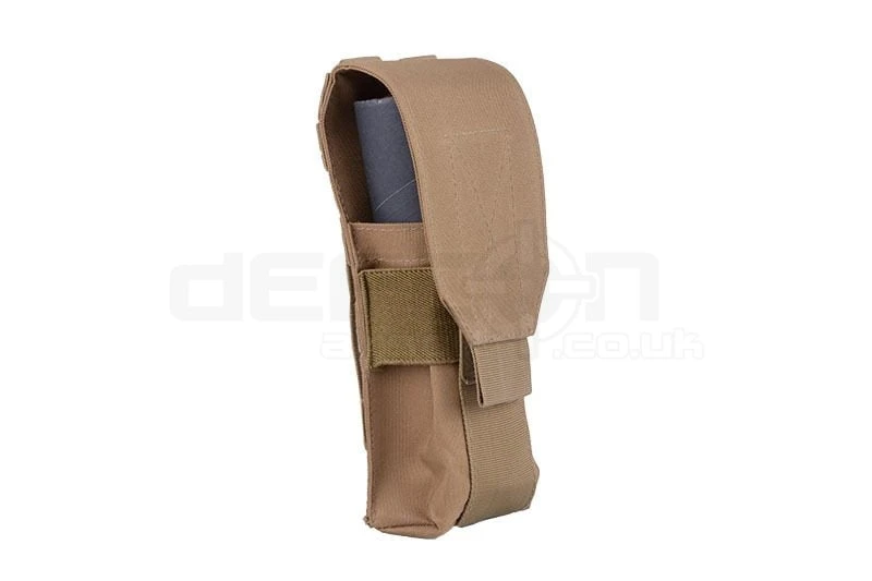 A tough, durable tactical pouch made from nylon suitable for use with MOLLE load bearing system. The flap of the pouch includes a Velcro closure. A flexible strap provides constant positioning of the magazines. The product can hold 2 RPK magazines or a smoke grenade.