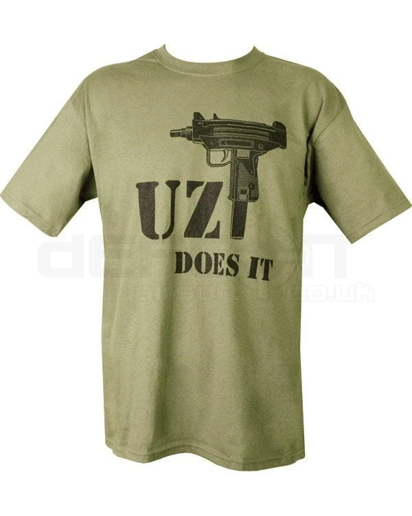 Uzi Does It T-shirt – Olive Green – DEFCON AIRSOFT