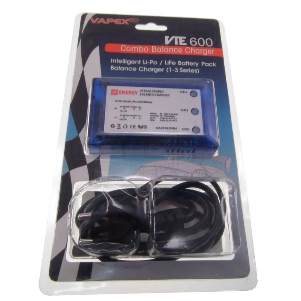 The Vapex VTE600 LiPO / LiFE Charger charger is an economic high quality 100-240V AC balance charger, which has been designed for charging airsoft AEG LiPo, LiPoly and LiFe batteries from 1 to 3 cells in balance mode.